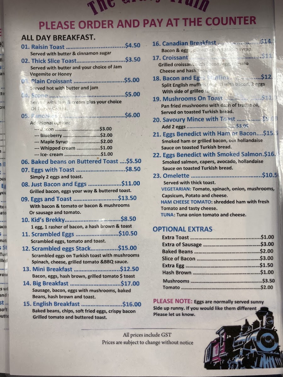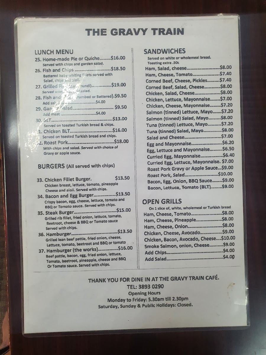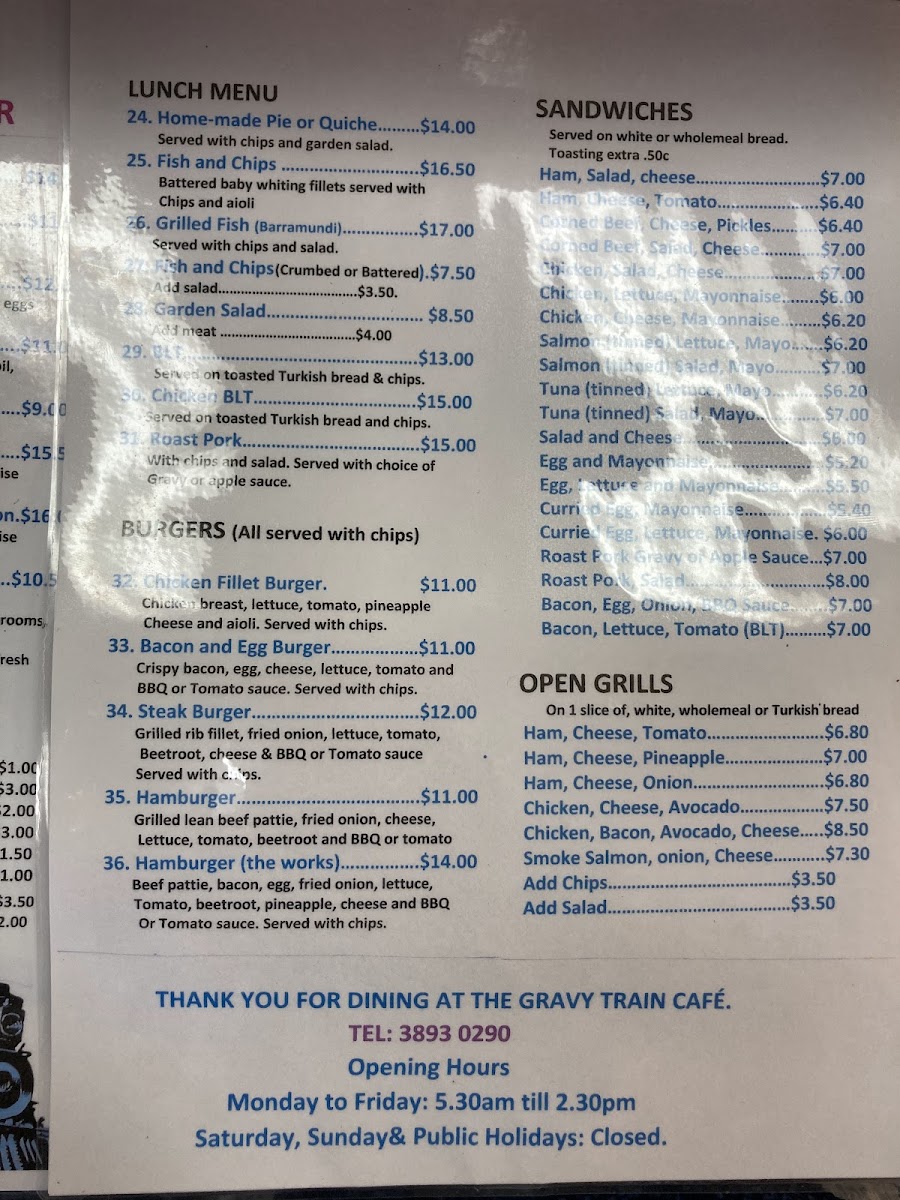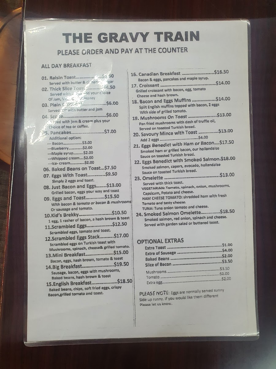 The Gravy Train Cafe Menu